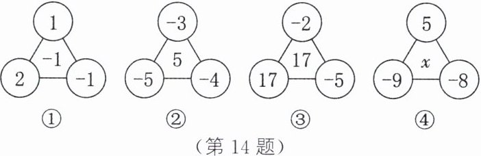 (2)题图④:$5×(-8)×(-9)=360$,$5+(-8)+(-9)=-12$,所以$x=360÷(-12)=-30$.