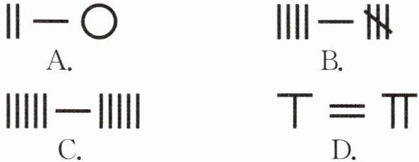 7. 新考向·数学文化 我国是最早认识负数的国家,元代数学家李治在算筹的个位数上用斜画一杠表示负数,如“-32”写成“≡ ╽”. 下列算筹表示负数的是(