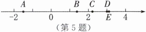 点 A 表示的数为$-1.5$,点 B 表示的数为$\sqrt{2}$,点 C 表示的数为$\sqrt{5}$,点 D 表示的数为 3,点 E 表示的数为$\pi$.$-1.5<\sqrt{2}<\sqrt{5}<3<\pi$.