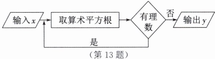 (1)因为$\sqrt{16}=4$,$\sqrt{4}=2$,所以$y=\sqrt{2}$.(2)存在.分两种情况讨论:① 当输入 x 的值没有算术平方根时,始终无法输出 y 的值,即当 x 的值为负数时,始终无法输出 y 的值.② 当输入 x 的值有算术平方根时,易知若 x 的值的算术平方根等于它本身,则始终无法输出 y 的值,即当$x=0$或 1 时,始终无法输出 y 的值.综上所述,当 x 的值为负数或$x=0$或$x=1$时,始终无法输出 y 的值.(3)25 或 36 或 49 或 64. 解析:因为经过两次运算后才能输出 y 的值,所以这个两位数取两次算术平方根后是无理数,且这个两位数的算术平方根必须是有理数.因为算术平方根是有理数的两位数有 16,25,36,49,64,81,所以将这些数代入运算程序计算,得 16,81 经过两次运算后,得到的值不是无理数,故不能输出 y 的值,不符合题意;25,36,49,64 经过两次运算后,得到的值是无理数,能输出 y的值,符合题意.所以 x 的值为 25 或36 或 49 或 64.