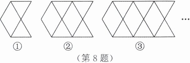 8. 如图,小丽用等长的木棒设计图案,她先用8根木棒摆出图案①,再按规律摆出图案②和图案③.
