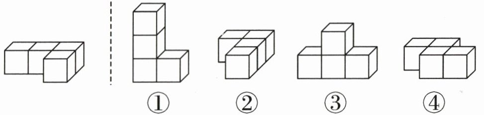 2. 小文用同样的4个小正方体搭出了下面几种立体图形,从右面看到的图形和左图从右面看到的图形相同的是( )。