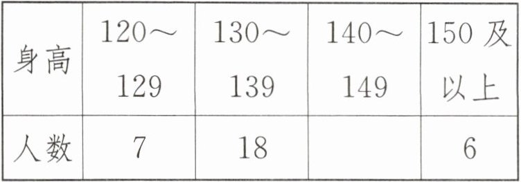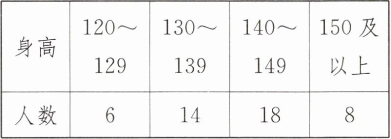 2. 王军整理了四(1)班45名同学的身高数据,绘制成了如下的统计表和统计图。(身高单位:厘米)