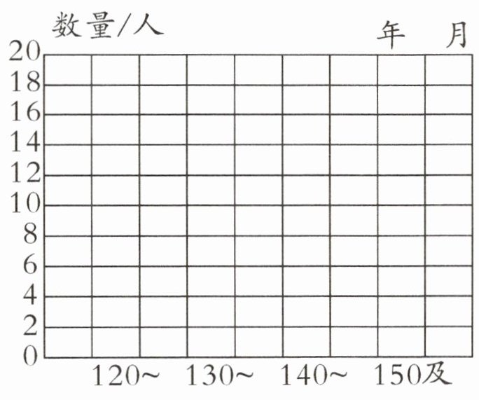 (纵轴:数量/人,刻度0,2,4,6,8,10,12,14,16,18,20;横轴:120~129、130~139、140~149、150及以上;右上角:年 月)