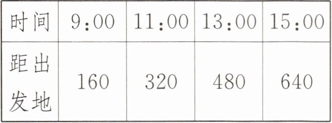 【提示】由表可知,从7:00到9:00共经过两个小时,汽车行驶了160千米。