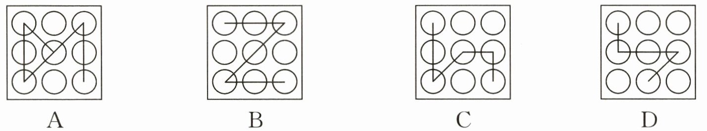 6. 爸爸的手机解锁用的是图案密码,图案中有一个直角、一个钝角和一个锐角,你认为是下面的图案( )。