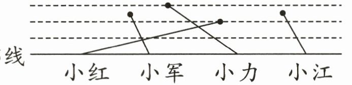 5. 沙包投掷练习时,同学们站在起掷线投掷,沙包落地点到起掷线的距离为同学们的成绩。下面是四名同学投掷沙包情况的示意图,( )的成绩最好。