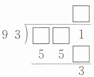 (2)$\begin{array}{r} \Box\\ 93\enclose{longdiv}{\Box\Box1}\\ 5\ 5\Box\\ \hline 3\end{array} $