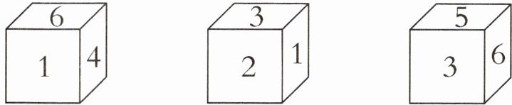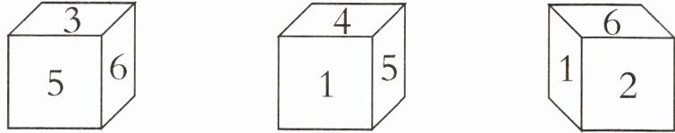 1.1对5,3对4,2对6。【提示】因为第一幅图和第二幅图中与1相邻的有4、6、2、3,所以1的对面是5;因为第二幅图和第三幅图中与3相邻的有1、2、5、6,所以3的对面是4;剩下的2和6相对。