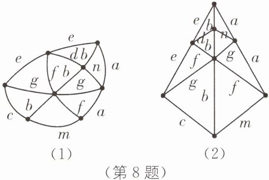 如图(1)是一个高速公路网络系统,共有9条高速公路(线),沟通8个城市(点). 为了方便起见,我们给它们标上了字母a,b,c,d,e,f,g,m,n,将1~9数字赋值到每个字母,使得连接每个城市的高速公路之和相等,且每个数字只能用一次.