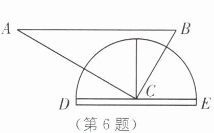 6.(2025·山西太原期末)将文具套尺中的量角器和三角板按照如图方式摆放. 其中,∠A= 30°,三角板的直角顶点C与量角器的中心重合,DE为量角器的直径. 下列条件中,不能判定AB//DE的是(
