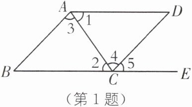 ①③④ [解析]①由内错角相等,两直线平行判定AB//CE,故①符合题意;