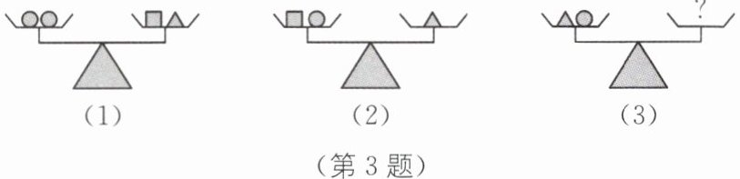 3.(2024·连云港海州区期末)如图,用“○”“△”及“□”代表3种不同物体,且前两个天平是平衡状态,现需在图(3)天平的“?”处放置