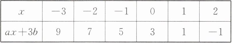 5. (2025·连云港东海期末)整式$ax+3b的值随x$的取值不同而不同,下表是当$x取不同值时整式ax+3b$对应的的值,则关于$x的方程ax+3b= 3$的解为(