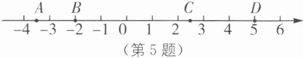 5. 教材 P17 例 1·变式 已知 A,B,C,D 四点在数轴上的位置如图所示,分别指出 A,B,C,D 四点表示的数.