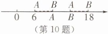 10. 如图,在数轴上有一条可以移动的线段 AB. 若将线段 AB 向右移动,使得点 A 移动到点 B 处,这时点 B 对应的数是 18;若将线段 AB 向左移动,使得点 B 移动到点 A 处,这时点 A 对应的数是 6. 如果数轴的单位长度是1厘米,问: