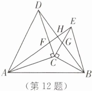 12. 手拉手模型 如图,△ACD 和△BCE 都是等腰直角三角形,∠ACD= ∠BCE= 90°,AE 交 DC 于点 F,BD 分别交 CE,AE 于点 G,H. 试猜测线段 AE 和 BD 的数量和位置关系,并说明理由.