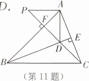 11. (2024·宿迁宿豫区期中)如图,在△ABC 中,BE⊥AC,CF⊥AB,垂足分别为 E,F,点 P 在 CF 的延长线上,点 D 在线段 BE 上,且 CP= AB,BD= AC,连接 AP,AD.