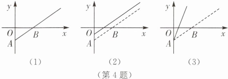 4. (湖北襄阳自主招生)某部影片的盈利额(即影片的票房收入与固定成本之差)记为 y,观影人数记为 x,其函数图象如图(1)所示.由于目前该片盈利未达到预期,相关人员提出了两种调整方案,图(2)、图(3)中的实线分别为调整后 y 与 x 的函数图象.给出下列四种说法: