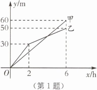 1. (湖南衡阳自主招生)甲、乙两个工程队分别同时开挖两段河渠,所挖河渠的长度 y(m)与挖掘时间 x(h)之间的关系如图所示,根据图象所提供的信息,其中不正确的是(