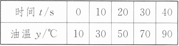 设锅中油温y与加热的时间t的函数表达式为y = kt + b(k≠0),将点(0,10),(10,30)代入,得{b = 10,10k + b = 30,解得{k = 2,b = 10,∴y = 2t + 10.