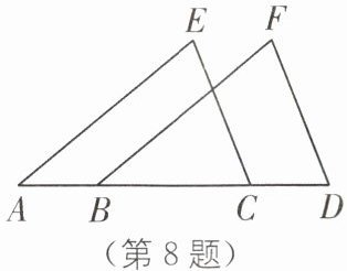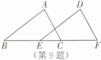 9. 如图,已知 AB//DE,且 AB= DE. 请你只添加一个条件,使△ABC≌△DEF,则添加一个条件是