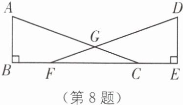 8. 实验班原创 如图,点 B,F,C,E 在同一直线上,AC 与 DF 相交于点 G,AB⊥BE,垂足为 B,DE⊥BE,垂足为 E,且 AC= DF,BF= CE.