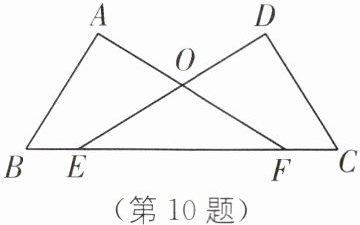 10. (2024·南京二十九中月考)如图,已知∠A= ∠D= 90°,E,F 在线段 BC 上,DE 与 AF 交于点 O,且 AB= CD,BE= CF. 求证:Rt△ABF≌Rt△DCE.