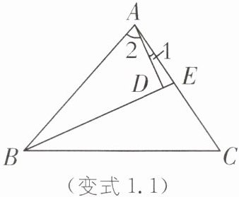 变式1.1 如图,在$\triangle ABC$中,$BE平分\angle ABC$,$\angle 2= \angle 1+\angle C$.