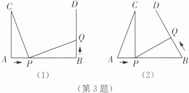 3.(2025·广东东莞光明中学期中)如图(1),AB= 14 cm,AC= 10 cm,AC⊥AB,BD⊥AB,垂足分别为A,B,点P在线段AB上以2 cm/s的速度由点A向点B运动,同时点Q在射线BD上运动,它们运动的时间为t(s)(当点P运动结束时,点Q运动随之结束).