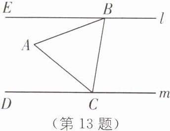 13.(2024·泰安中考)如图直线l//m,等边三角形ABC 的两个顶点B,C分别落在直线l,m上,若∠ABE= 21°,则∠ACD 的度数是 ( ).