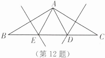 12. (2024·南京师大附中月考)已知:如图,在△ABC AB= AC,∠BAC= 120°,AB,AC边的垂直平分线分别交BC于点E,D,连接AE,AD求证:△AED等边三角形.
