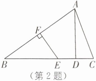 2. 如图,在△ABC 中,AB 的垂直平分线 EF 交 BC 于点 E,交 AB 于点 F,D 为线段 CE 的中点,BE= AC.