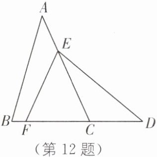 12. 已知△ABC 与△DEF 全等,A,B,C 的对应点分别为 D,E,F,且点 E 在 AC 上,B,F,C,D 四点共线,如图所示. 若∠A= 40°,∠CED= 35°,则下列正确的是(