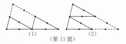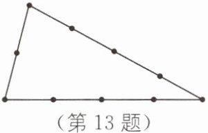 13. 中考新考法 满足条件的结论开放 如图是用 10 根火柴棒搭成的一个三角形,你能否移动其中的 3 根,摆出一对全等的三角形?画出你的修改方案. 移动其中 4 根能否摆出一对全等三角形?请画图说明.