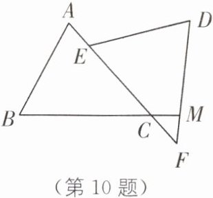 10.(2025·苏州期中)如图,已知△ABC≌△EDF,点 A,E,C,F 在同一直线上,延长 BC 交 DF 边于点 M,若∠BAC= 70°,∠EDF= 62°,求∠CMF 的度数.