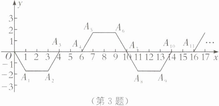 3. 如图,已知$A_1(1,-√3),A_2(3,-√3),A_3(4,0),A_4(6,0),A_5(7,√3),A_6(9,√3),A_7(10,0),A_8(11,-√3),…,$依此规律,则点$A_2₀_2_4$的坐标为______