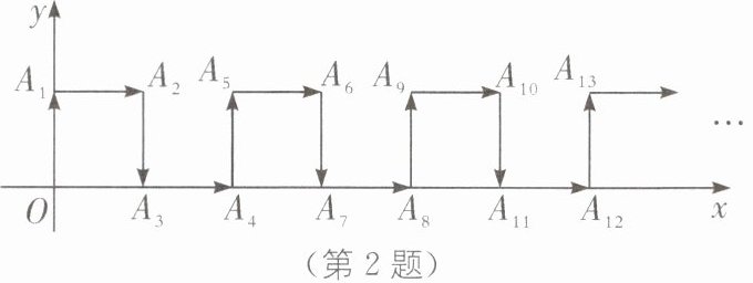 2. 如图,在平面直角坐标系中,一动点从原点 O 出发,按向上,向右,向下,向右的方向不断地移动,每移动一个单位,得到点$A_1(0,1),A_2(1,1),A_3(1,0),A_4(2,0),…,$那么点$A_2₀_2₀$的坐标为______.