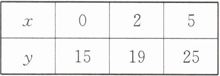 (1)把x=2,y=19代入y=kx+15,得19=2k+15,解得k=2,所以y与x的函数表达式为y=2x+15(x≥0).