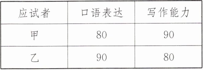 学校广播站要新招1名广播员,甲、乙两名同学经过选拔进入到复试环节,参加了口语表达、写作能力两项测试,成绩如表: