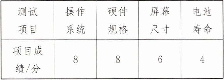2.(2025·苏州昆山期中)某测试中心分别从操作系统、硬件规格、屏幕尺寸、电池寿命四个项目对新投入市场的一款智能手机进行测评,各项得分如下表: