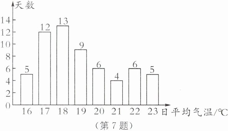 7. 实验班原创 某校气象兴趣小组的同学们想预估一下南京市 2025 年 10 月份日平均气温状况. 他们收集了南京市近五年 10 月份每天的日平均气温,从中随机抽取了 60 天的日平均气温,并绘制成如下统计图: