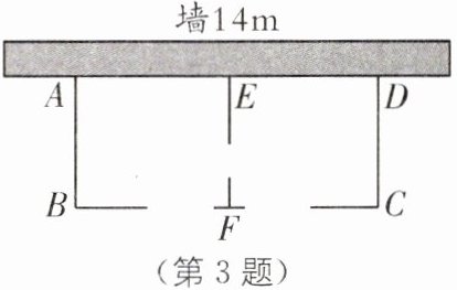 3.(2025·盐城盐都区期中)如图,用长为22米的篱笆,一面利用墙(墙的最大可用长度为14米),围成中间隔有一道篱笆的长方形花圃.为了方便出入,建造时,在BC上用其他材料做了宽为2米的两扇小门,在EF上用其他材料做了宽为1米的一扇小门.