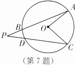 7.(2025·宿迁宿城区期中)如图,AB、CD是$\odot O$的弦,延长AB、CD相交于点P.已知∠P= 30°,∠AOC= 80°,则$\widehat{BD}$的度数是______°.