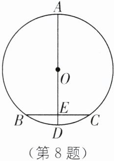 8. 教材P49习题T5·变式 如图,点B、C在$\odot O$上,D为$\widehat{BC}$的中点,直径AD交BC于点E,AD= 6,BC= $2\sqrt{3}$,则DE的长为______.