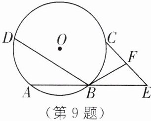 9.(2024·徐州铜山区期中)如图,点A、B、C、D在$\odot O$上,且$\widehat{AD}= \widehat{BC}$,E是AB延长线上一点,且BE= AB,F是EC的中点,若BF= 6 cm,则BD= ______cm.