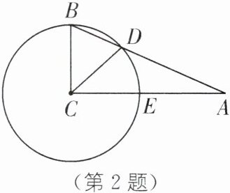 2. 实验班原创 如图,在Rt△ABC中,∠ACB= 90°,以点C为圆心,BC为半径的圆分别交AB、AC于点D、E,且$\widehat{BD}$的度数为50°,则∠A的度数为(