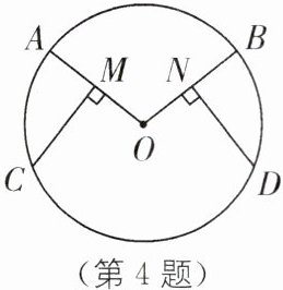 4. 教材P45例1·变式 已知:如图,在$\odot O$中,M、N分别是半径OA、OB的中点,且CM⊥OA,DN⊥OB.求证:$\widehat{AC}= \widehat{BD}$.