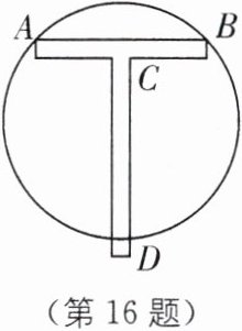 16. 教材 P52 练习 T1·变式 图中工具边 CD 所在的直线恰好垂直平分边 AB,你能利用这个工具找出一个圆的圆心吗?请说明理由.