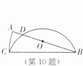 10.(无锡江阴南菁中学自主招生)如图,以AB为直径的半圆沿弦BC折叠后,AB与$\overset{\frown}{CB}$相交于点D.若$\overset{\frown}{CD}= \frac{1}{3}\overset{\frown}{BD}$,则$\angle B= $______${}^{\circ }$.
